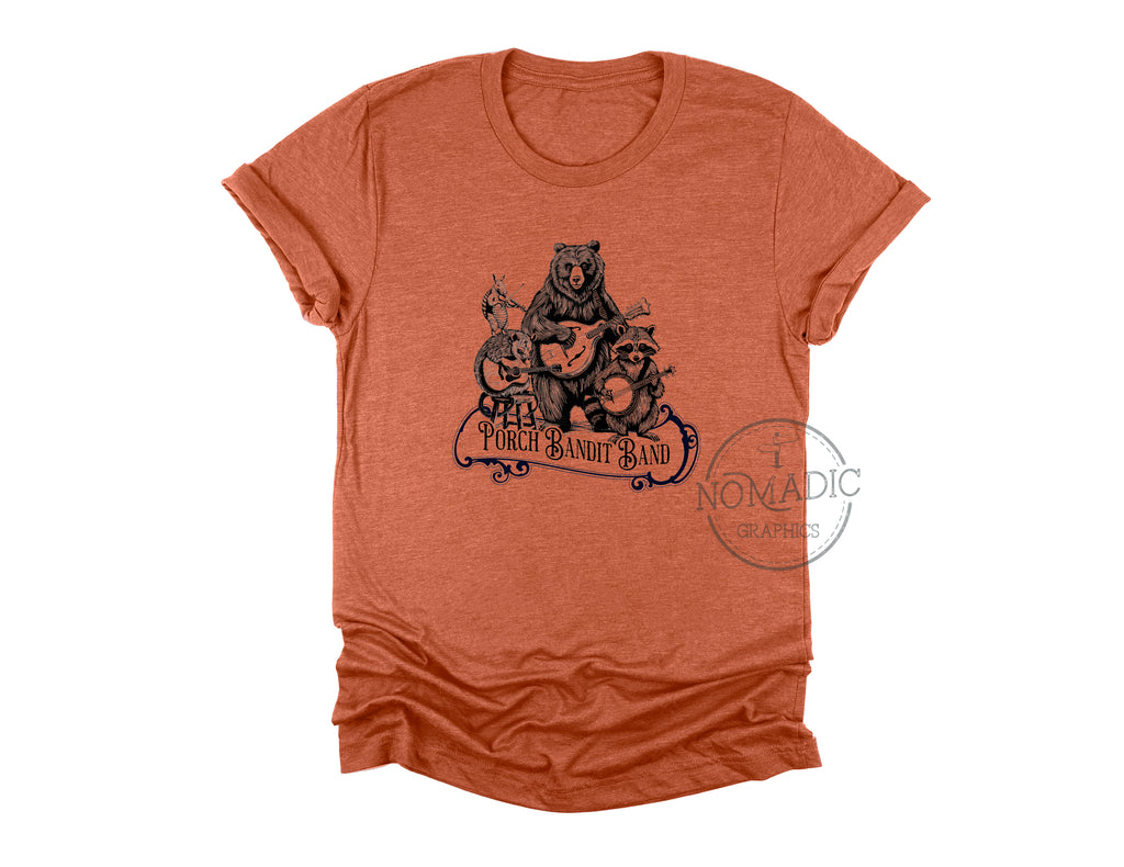 The Porch Bandit Bluegrass Band, each with their own tiny instruments. Bear, squirrel, possum, & raccoon in harmony.